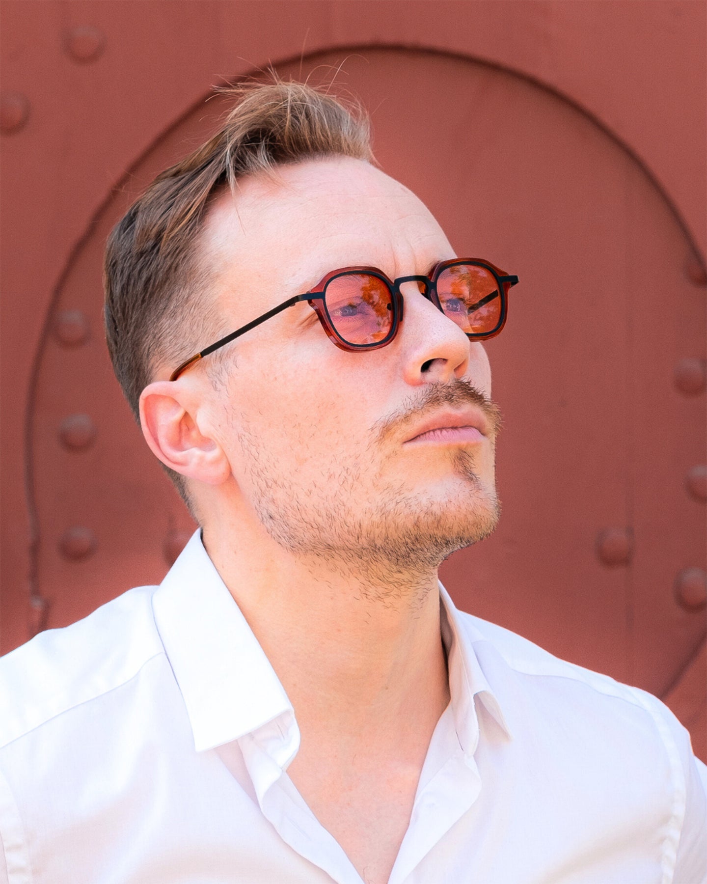 The CobaltVision – Orange grounds rich brown acetate with the striking clarity of cool blue lenses. The contrast feels both earthy and electric — a dialogue between tradition and reinvention. Bold yet wearable, this design carries effortless confidence, perfect for those who move seamlessly from city streets to coastal horizons.