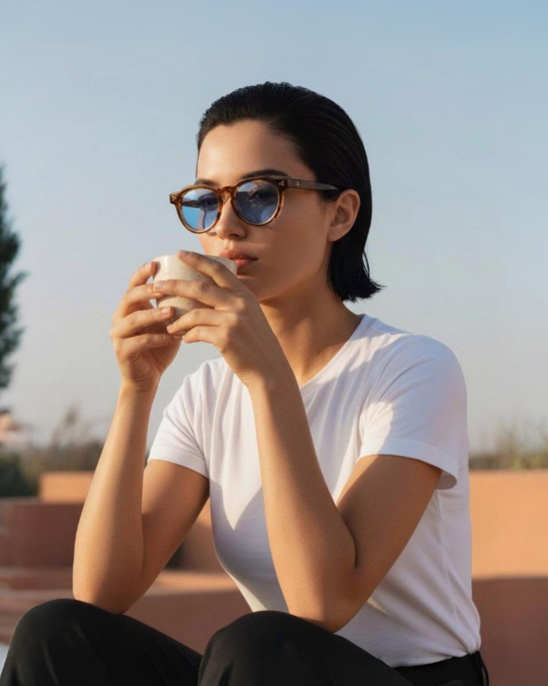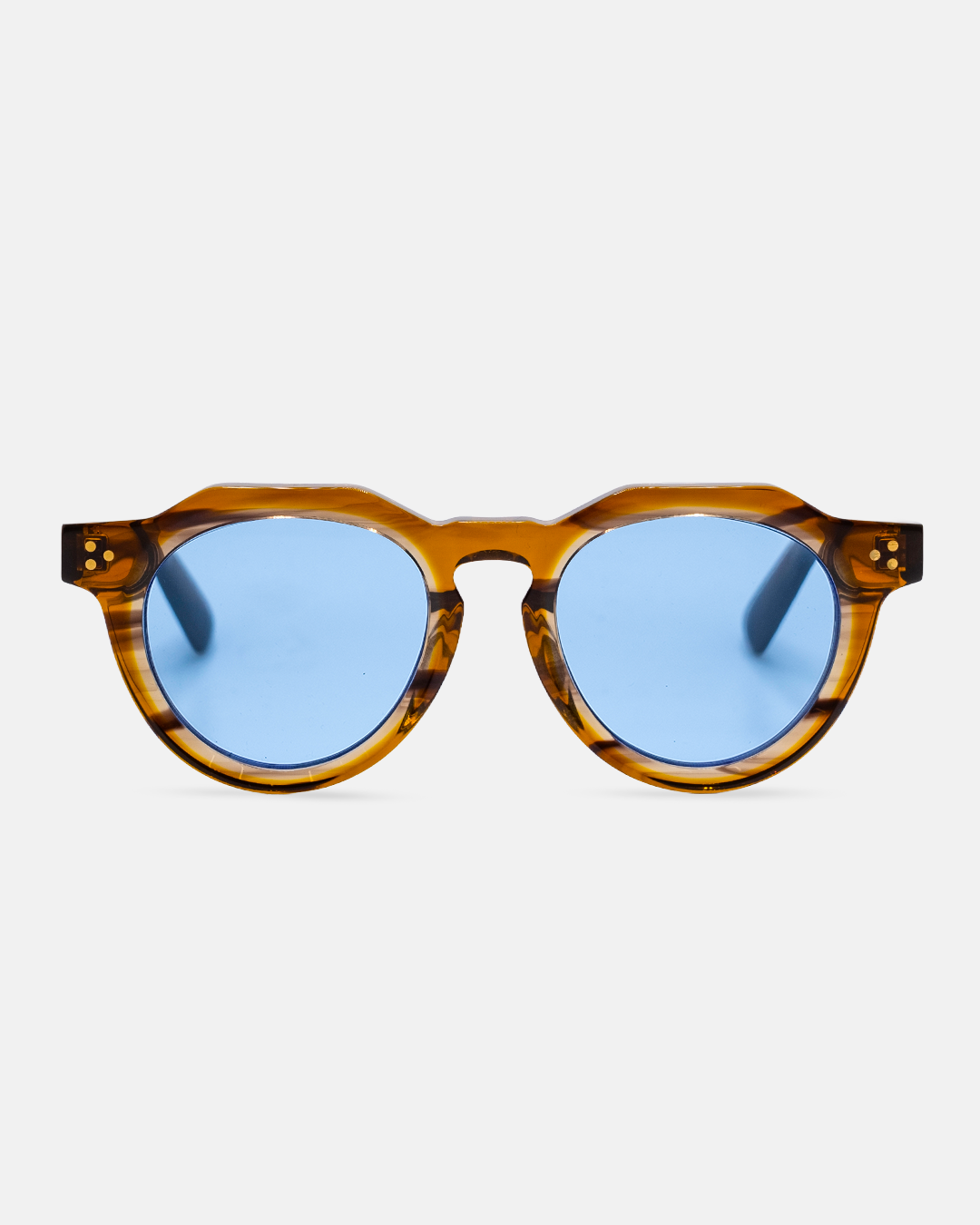 SolarGleam – Brown/Blue pairs a warm brown acetate frame with soft blue lenses. Designed to offer a modern yet classic look, it works seamlessly for both casual outings and refined occasions. A versatile accessory that adds subtle color and contemporary style to any ensemble.