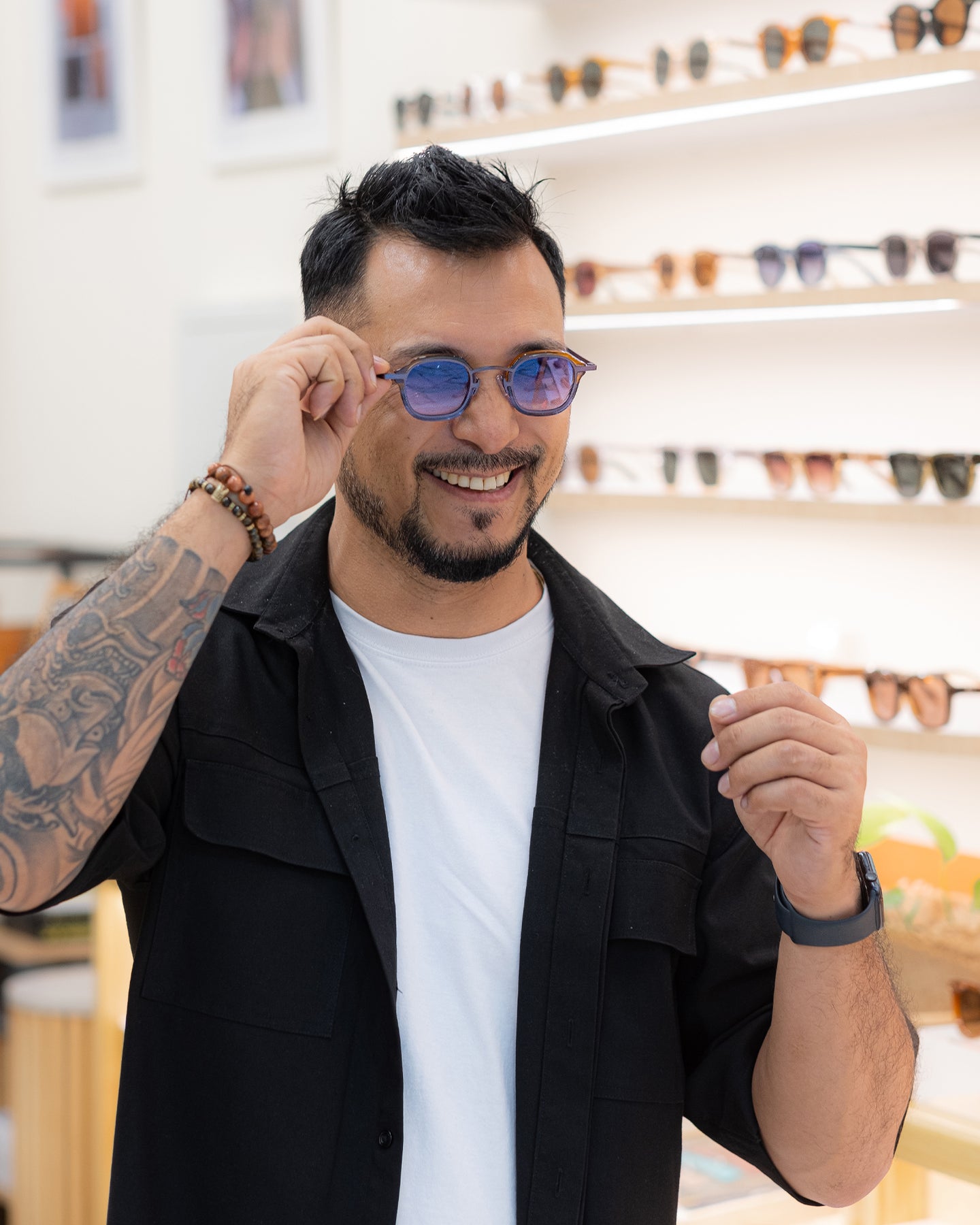The CobaltVision – Brown/Blue grounds rich brown acetate with the striking clarity of cool blue lenses. The contrast feels both earthy and electric — a dialogue between tradition and reinvention. Bold yet wearable, this design carries effortless confidence, perfect for those who move seamlessly from city streets to coastal horizons.